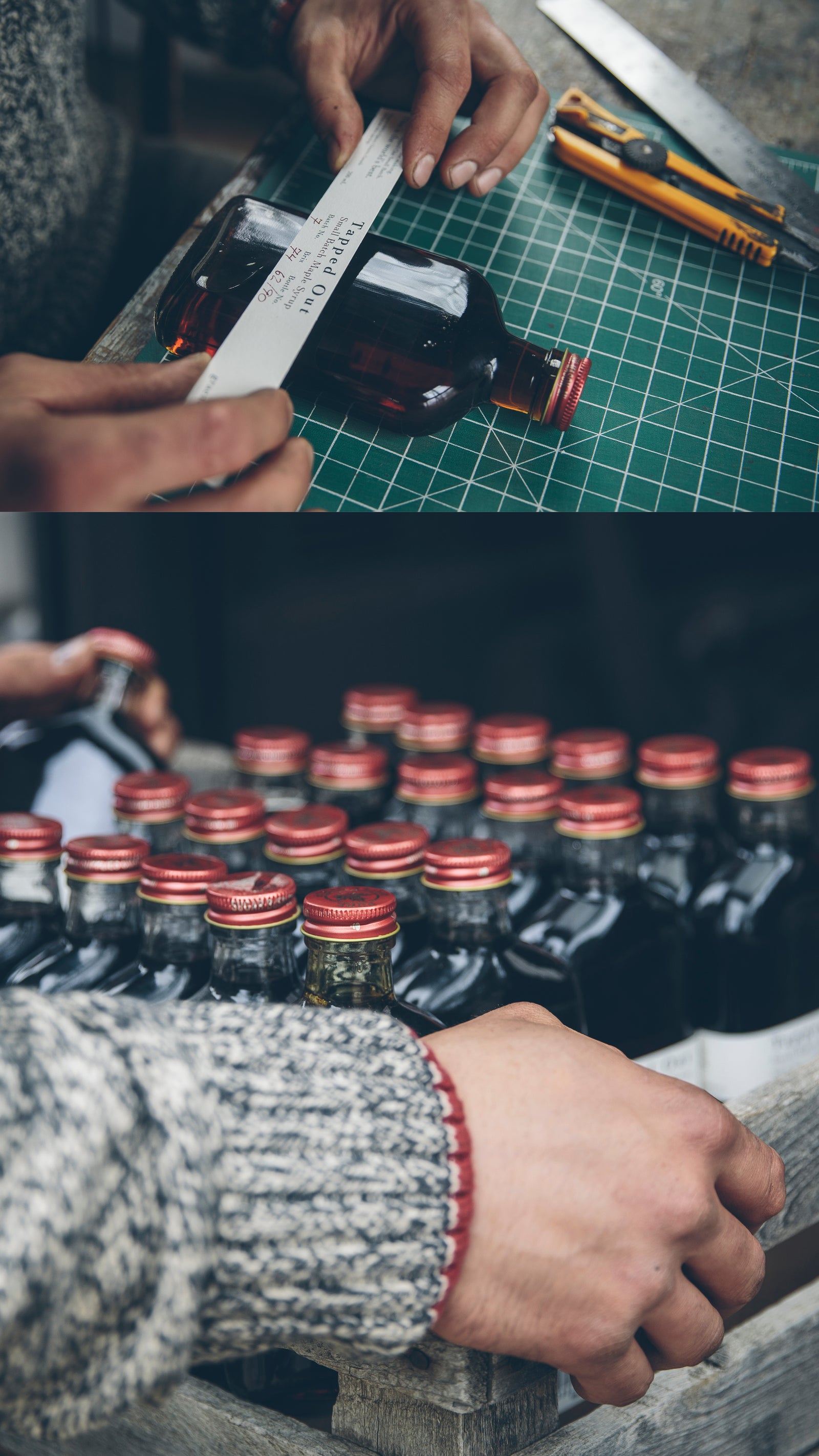 Each bottle of Tapped Out Small Batch is bottled just as this photo shows. Each bottle is filled by hand, and each individual bottle given a final quality check before the labeling and delivery process. This is often the most rewarding part – to see the hard work and passion that finally gets put into the finished product. Each batch always has its own unique colour and flavour, and no batch is ever the same.