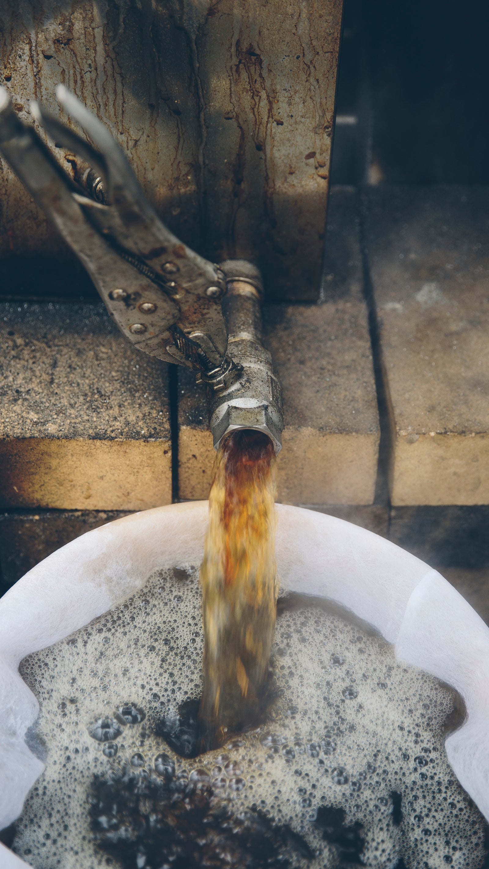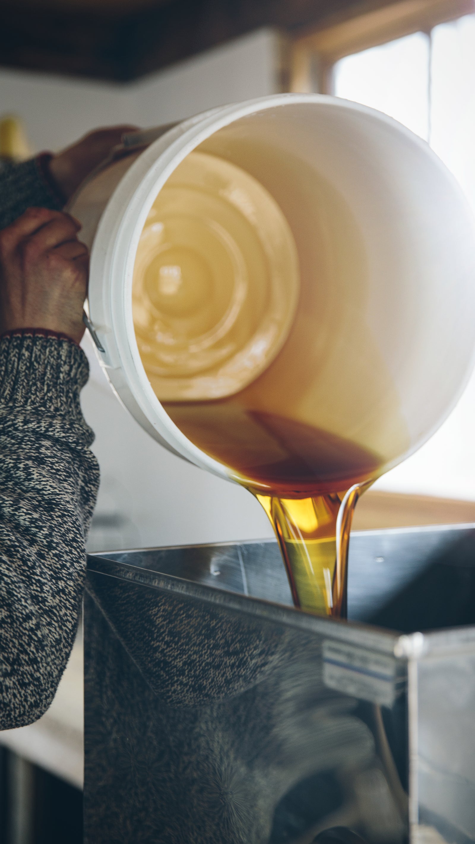 When you boil sap, a substance called sugar sand is created. This is essentially mineral that crystallizes during the boiling process. This sugar sand is the main reason why all maple syrup is filtered. We filter on average four times. The main reason for this is to remove as much sugar sand as possible before we do our final filtering through a thick felt filter. The thick felt filter removes the cloudiness that is also present in the syrup. On occasion a very small amount of cloud may settle at the bottom of a finalized bottle, but it does not affect the taste, texture or quality of the maple syrup inside. When filtering, the syrup needs to be at its final sugar content. If filtering is done too early, and the syrup needs to boil more, the filtering process must be restarted. Conventional maple syrup is 66% sugar and Vermont Syrup is 67%. At Tapped Out, we don’t bottle below 68% and have had some batches go as high as 75% sugar content. This high sugar content helps to concentrate the flavours even more.